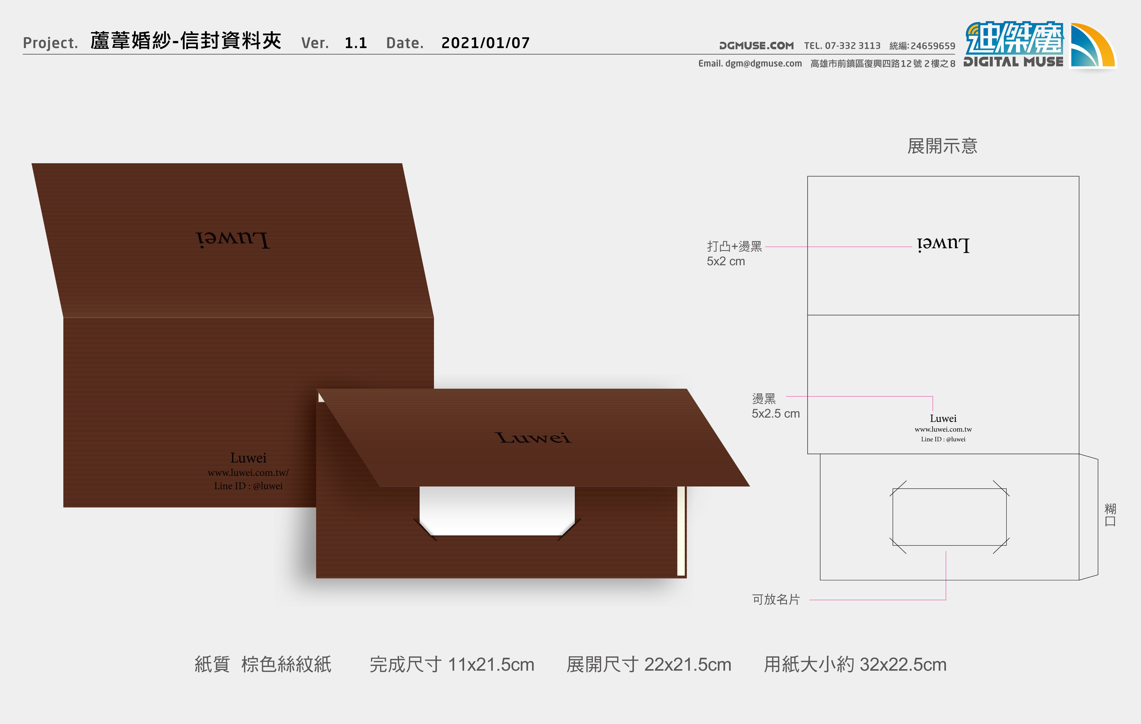 蘆葦婚紗橫式信封資料夾:棕色粉彩紙/正面打凸+燙黑 /正面打凸+燙黑